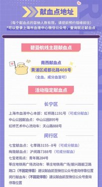 除了上述注意事项外,所有参与碧蓝航线活动的献血点地址都将贴在文章结尾,指挥官也可以登录上海市血液中心微信公众号,查询就近献血点。