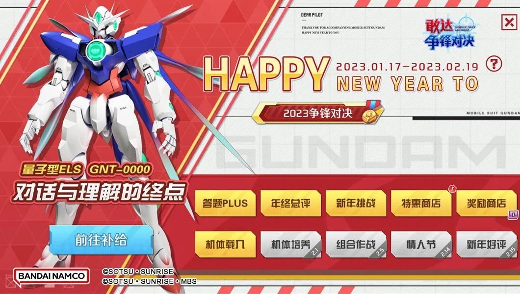 紧跟着5周年的步伐,《敢达争锋对决》为大家准备了奖励更丰厚的“新春活动”,带领大家在新的一年旗开得胜: