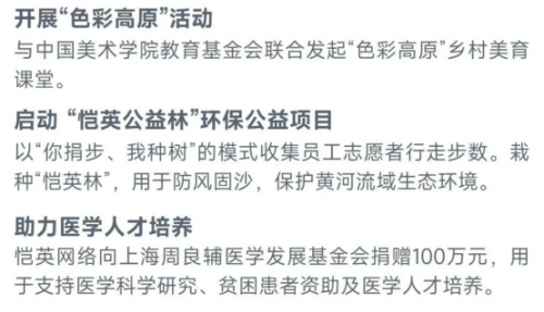 公益活动延续现有思路并关注校园欺凌等社会事件