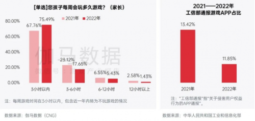 75.49%的未成年人每周游戏时长低于3小时2022年工信部通报的侵权APP中游戏占11.85%,较2021年减少1.57个百分点