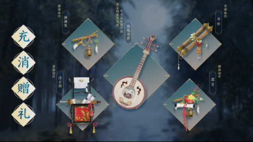 兔年新春福运作伴,还有更多惊喜!2月2日7:00至2月14日24:00期间,侠士可享受【1元/100通宝=4积分】的比例获取积分(不含烟花)!侠士参与充消活动还将有机会获得可交互阮款式乐器背挂“独抱清商”,四弦声碎珠历历,长夜西风度玉音,环抱而奏,花落纷纷。