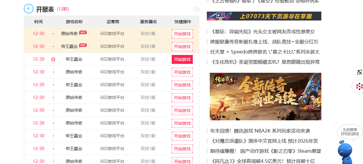 找页游新服,就上07073游戏网!作为国内领先的游戏资讯平台,07073打造的页游开服表凭借实时更新、专属福利、攻略护航三大优势,成为玩家首选的新服查询利器,助力平台开服表相关关键词权重持续攀升!