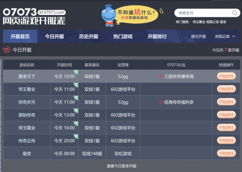 今日,国内权威游戏资讯平台07073开服表准时更新,多款精品网页游戏新服接力开启,覆盖传奇、仙侠、策略三大主流品类,全时段精准适配玩家作息,海量专属福利同步放送,为广大玩家带来多元热血的游戏新体验。