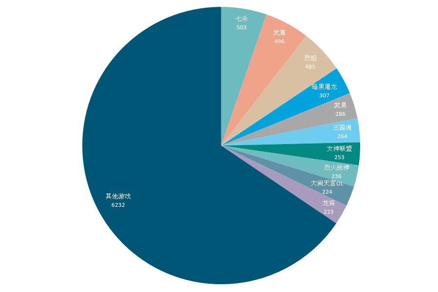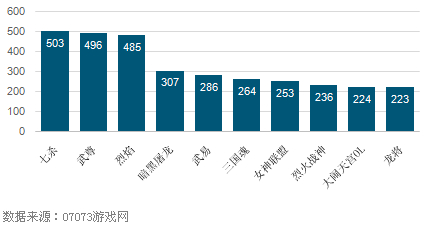 本周在游戏开服量方面,榜单前三位的游戏开服数量出现了较为明显的变化。《七杀》经过连续数周的大规模新平台入驻推广,其游戏开服量持续增加,本周其游戏开服总量再度有较大幅度增长,致使其已经提升至榜单首位。《烈焰》和《武尊》本周开服量都出现了一定幅度的下降,观察两款游戏开服率也有一定幅度下降,说明为现有平台缩减开服量所致。