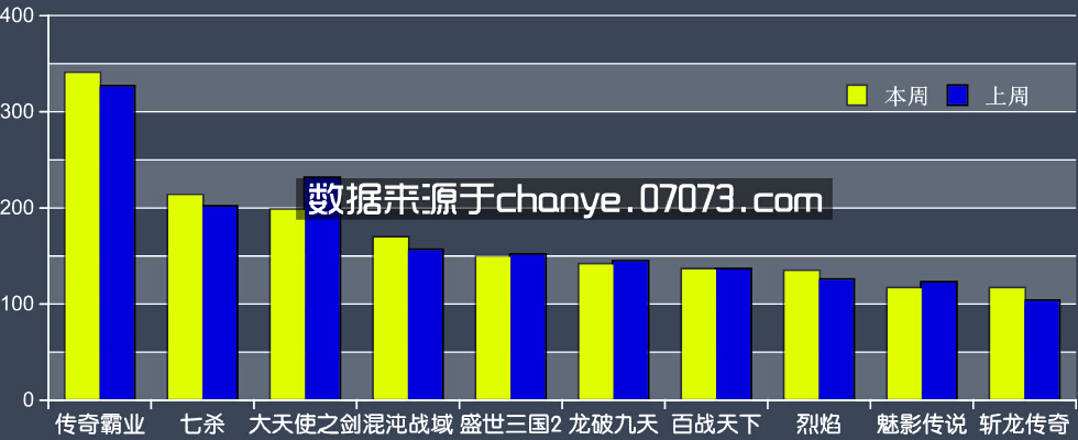 本周在游戏开服量方面,与上周的大部分游戏一路看涨相比,本周主流游戏开服量涨跌各异。《大天使之剑》本周开服量降幅较多,加上《传奇霸业》和《七杀》的开服量都有所增长,所以其在游戏开服量榜单上的位次再度下滑。《斩龙传奇》本周涨幅较大。