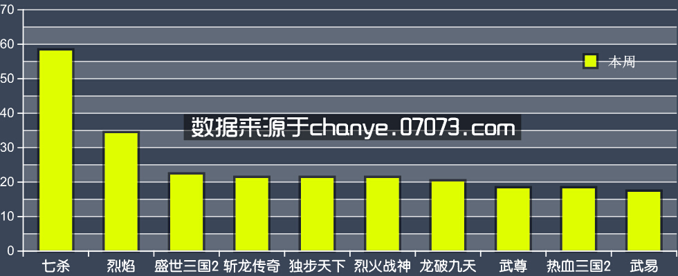 在游戏入驻新平台方面,本周再度有所提升。《七杀》因为新平台的入驻力量不断增加,带动其在游戏开服量榜单上也一路看涨。紧随其后的《烈焰》本周对新平台的入驻量也继续增加。《武尊》《热血三国2》两款老游戏本周也增加了一定的新平台入驻量。