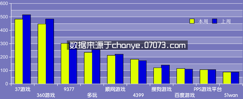 观察本周开服量最大的三家主流平台,依然分别为37游戏、360游戏和9377。三家主流平台本周在平台主打游戏方面也没有做出明显的变动。仅360游戏方面,本周对第一主打游戏《天书世界》和第二主打游戏《花千骨》的开服量有相对较为明显的缩减。