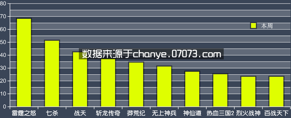 在游戏入驻新平台方面,《雷霆之怒》《七杀》《战天》依旧分列游戏入驻新平台榜单第一、二、三位。其中排在首位的《雷霆之怒》与上周相比入驻量还继续有所提升。《莽荒纪》本周入驻较多新平台,从而出现在榜单中,未来发展还需观察。