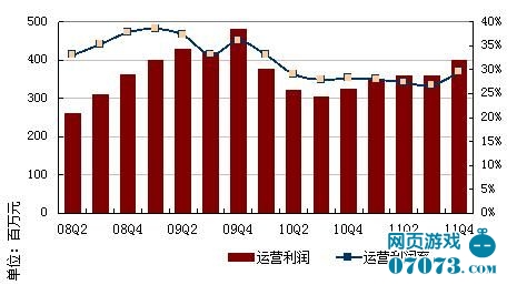 运营利润为4.01亿元人民币(6,360万美元),较去年同期增长23.4%,较上季度增长10.9%;2011年第四季度运营利润率为29.6%,去年同期为28.2%,上季度为26.7%。